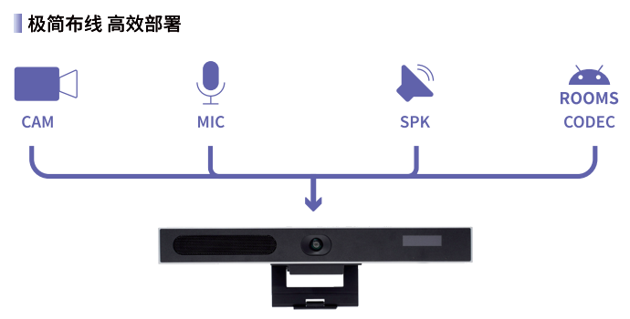 一体化视频会议终端是将摄像头、麦克风、扬声器、编解码器、Wi-Fi/蓝牙、无线投屏等模块高度集成的设备,简单布线、开箱即用、AI增强、多平台兼容,适配绝大多数会议室与移动场景。